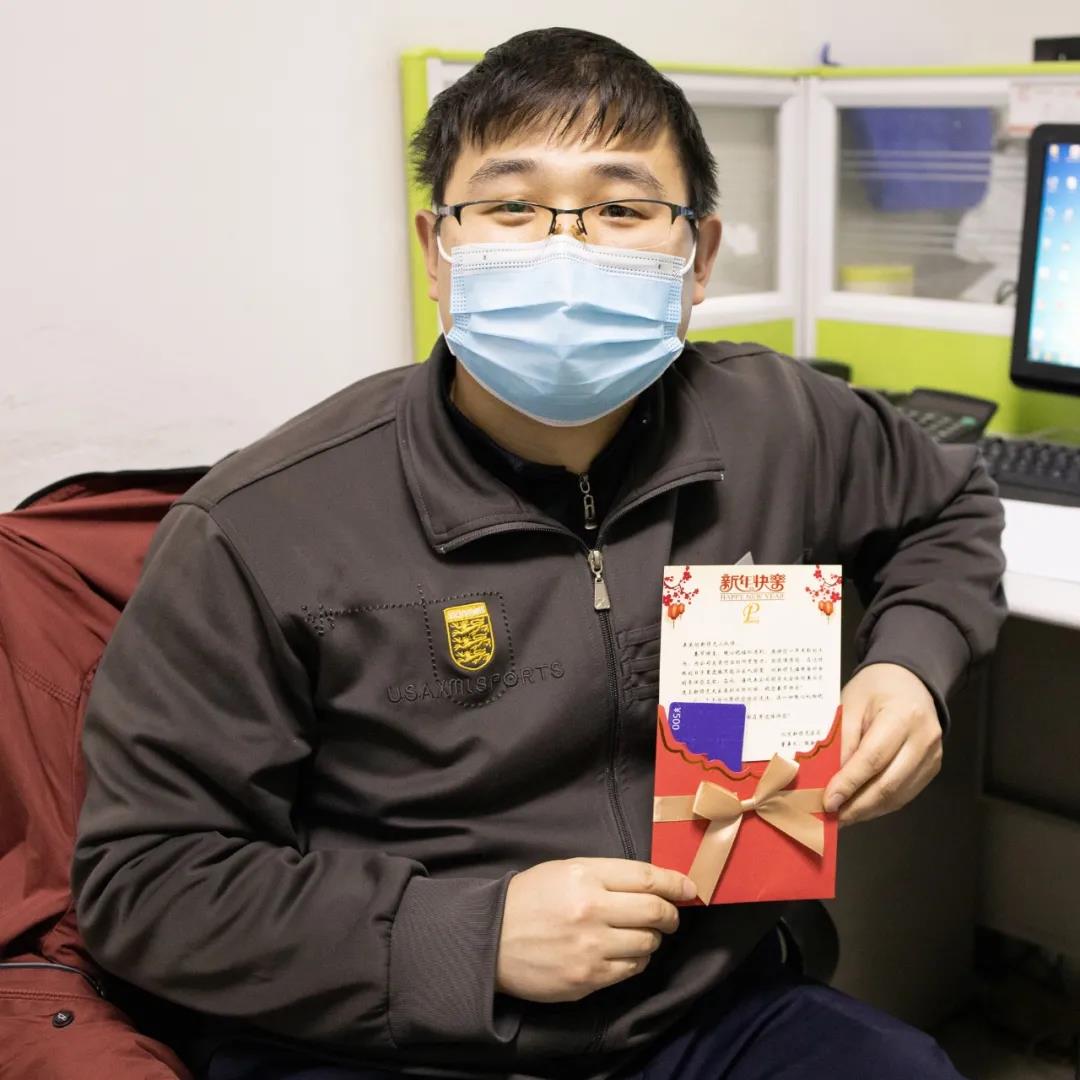 吃的飽飽的,兜里鼓鼓的,新領先為每位在京過年無親友陪伴的員工發放新年賀卡和價值500元的京東購物卡。